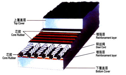 普通結構型鋼絲繩芯輸送帶特點: